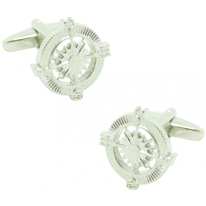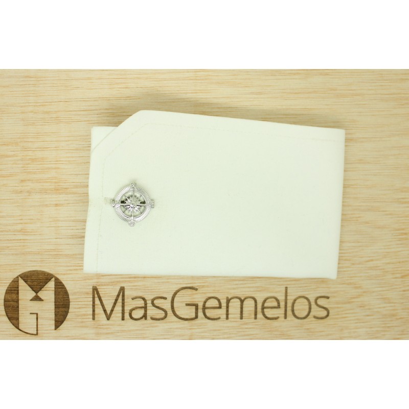Gemelli per la camicia Rosa dei Venti, strumento utilizzato nelle carte di navigazione, che rappresenta la circonferenza dell'orizzonte, suddivisa in 32 parti, seguendo la direzione degli aghi dell'orologio e con valore in gradi. Segna le possibili direzioni dei venti, il cui nome varia a seconda della loro direzione. Questo disegno appare anche nelle bussole magnetiche, che sono l'equivalente della bussola terrestre.
