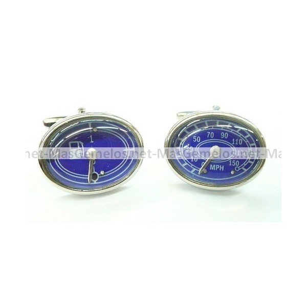 Gemelli per camicia blu con tachimetro e benzina