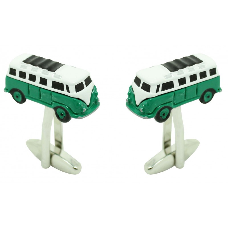 # Gemelli per camicia blu # realizzati in acciaio e rivestiti di rodio, smaltati in verde e bianco che rappresentano il furgone più famoso degli anni '80 e più originale.