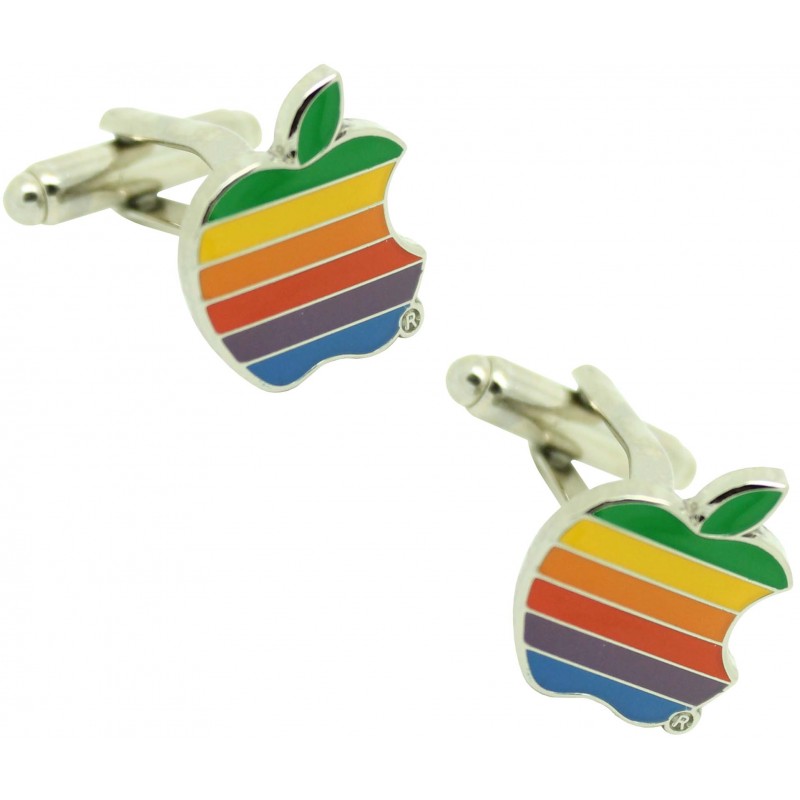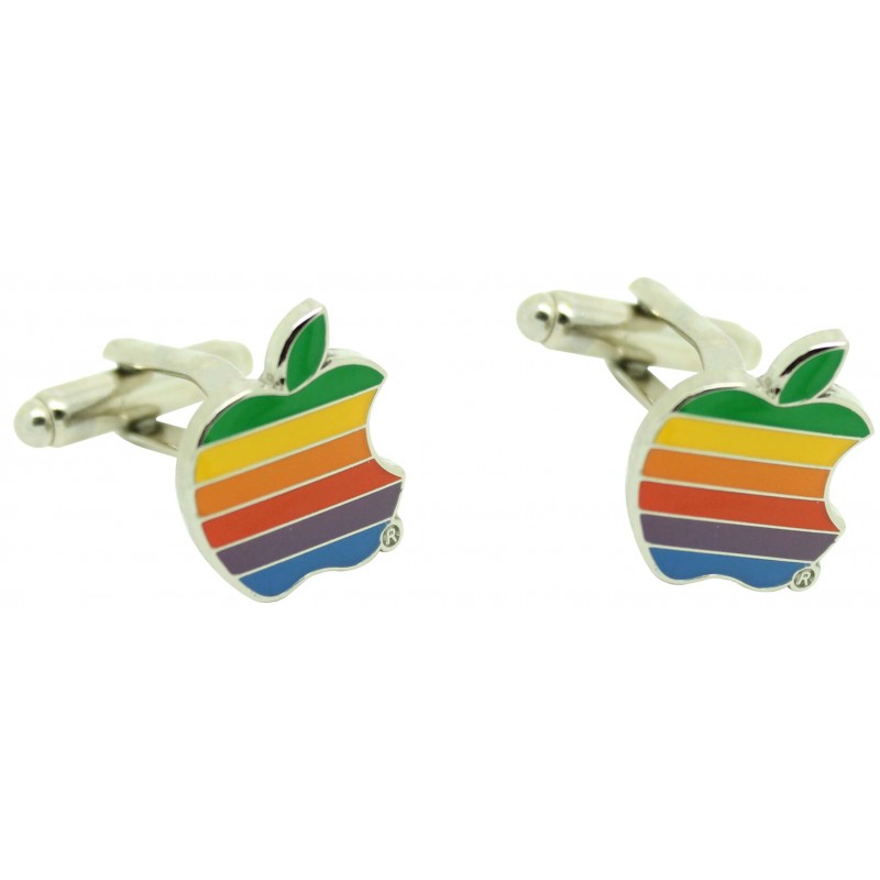 Gemelli per camicia mele multicolore realizzati in acciaio e rivestiti di rodio che rappresenta la forma della mela colorata.