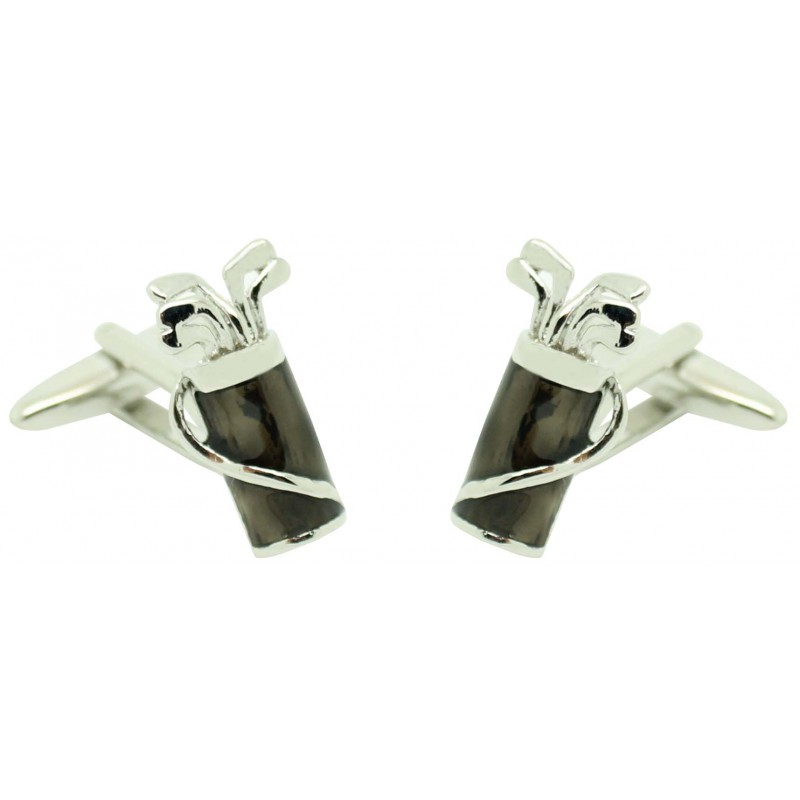 Gemelli per camicia Borsa da golf grigio realizzati in acciaio e rivestiti di rodio che rappresenta la forma di una borsa da golf dove vengono conservati i bastoni da usare per praticare il golf.