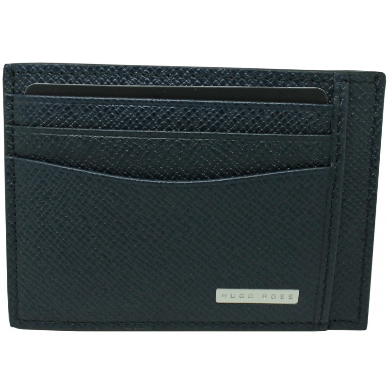 Cartellino di Hugo Boss nero , realizzato in pelle morbida di alta qualità con tonalità granulate, è compatto e sorprendentemente ampio in azzurro marino.