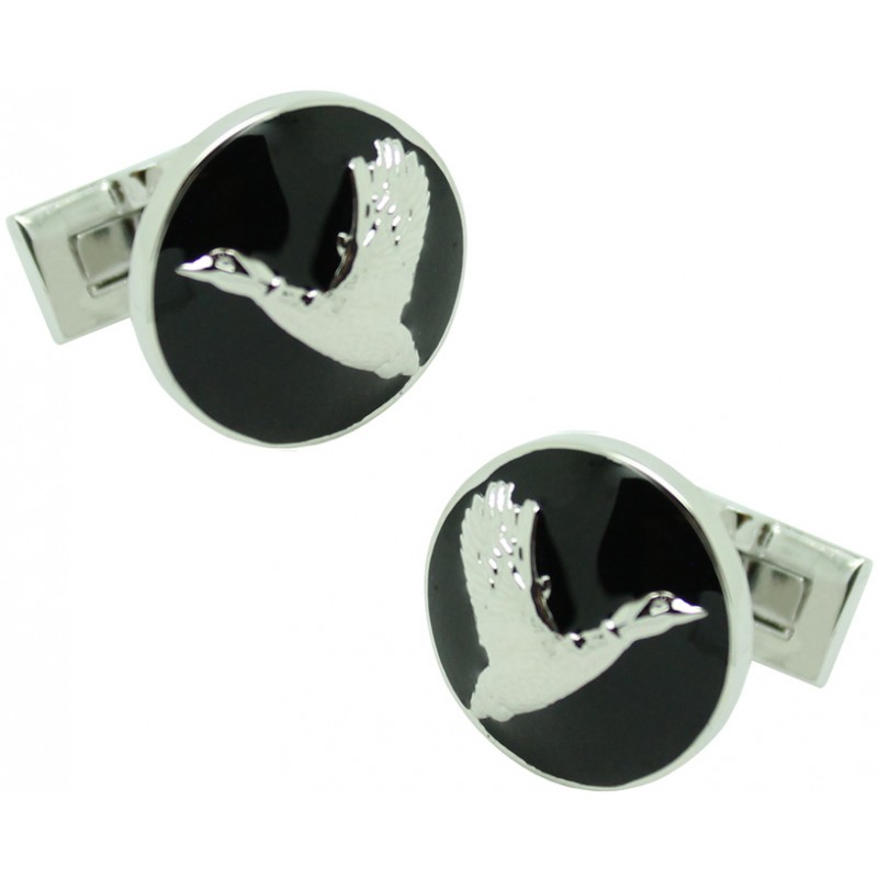 Gemelli per camicia di anatrocco by Skultuna con fondo Nero ed argento, una delle più riconosciute marche di Gioielleria provenienti dalla Svezia e oltre alle più antiche del mondo fondata nel 1607 e che porta la Casa Reale di Svezia.