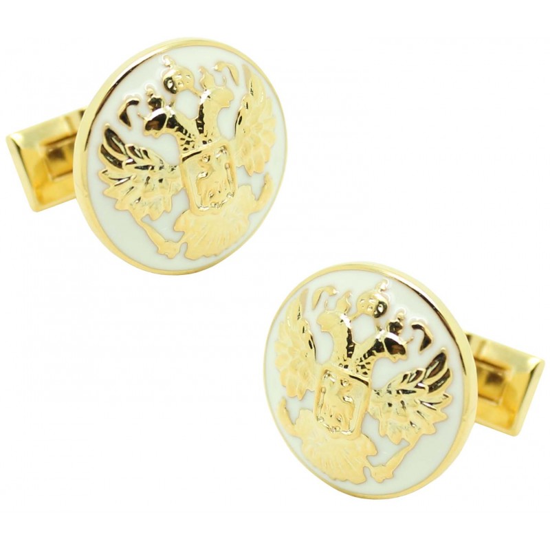 Gemelli per camicia Skultuna con doppia aquila dorata - bianchi