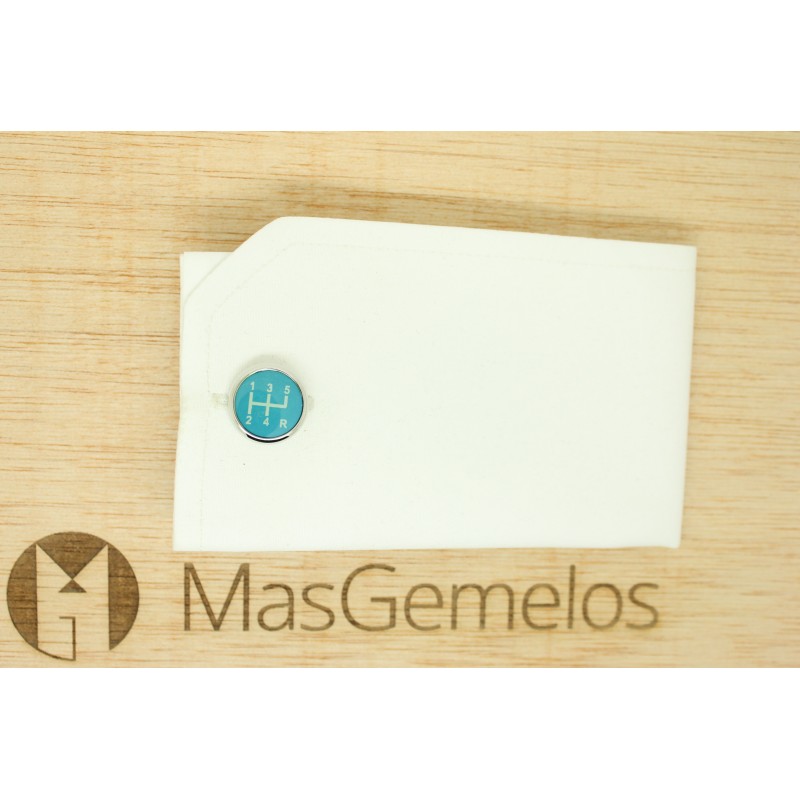 Gêmeos para camisa palanca de mudança de carro com cinco marchas em azul.