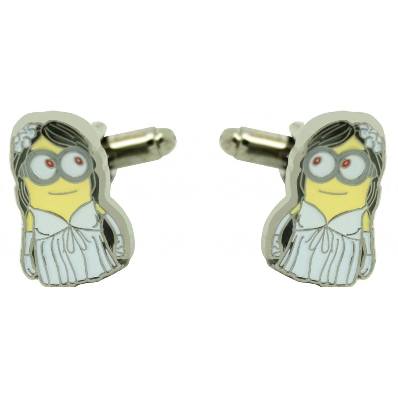 Gêmeos para camisa Casamento de Minions feito em aço e banhado em rodium que representam os Minions vestidos de meninos de casamento