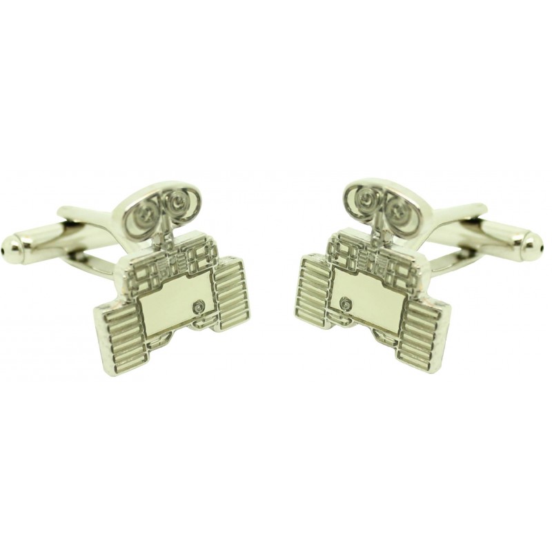 Gêmeos para camisa WALL-E feito em aço e banhado em rodio, em aço que representam a imagem do robô que trabalha coletando terra e que quer começar uma grande busca através da galáxia da mão de Eva seu amigo Robô moderno.