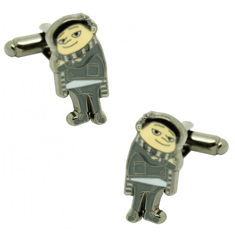 Gêmeos para camisa Gru feitos de aço e banhados em rodio.