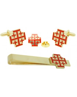 Pacote de gemas para camisa, alfinete de gravata e pin com a cruz da Ordem de Cavalaria do Santo Sepulcro de Jerusalém.