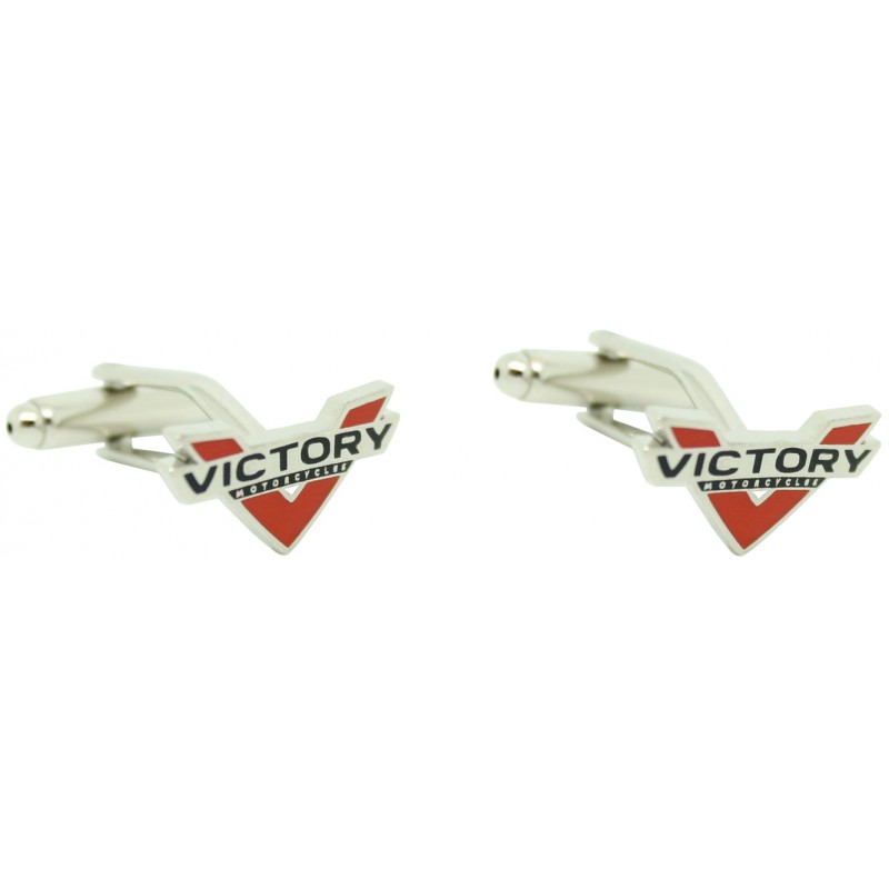Gêmeos para camisa Victory Motorcycles feitas de aço e banhadas em ródio, na cor vermelha que representam o emblema do fabricante de Motocicletas Americanas de Iowa que dispõe de uma ampla gama de Motocicletas para os amantes das motos.