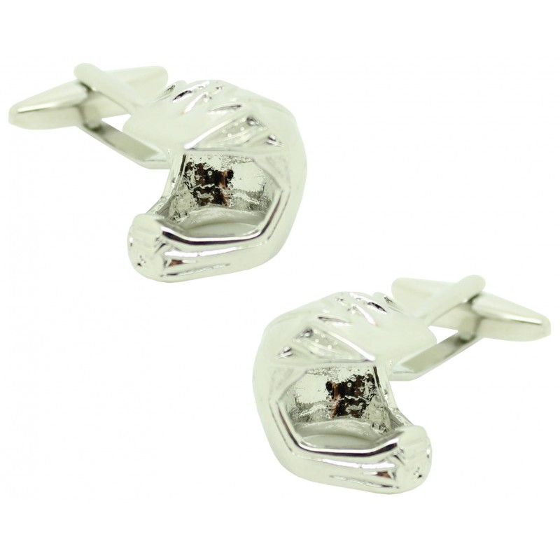 Gêmeos para camisa Casco motocross feito de aço e revestido em rodio, que representa a forma de um capacete de motocross feito em 3D com todos os detalhes da visera do capacete, bem como os óculos para se proteger sempre que pegar a moto.