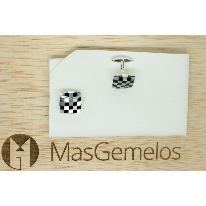 Abotoaduras de Pedra Xadrez em Prata 925