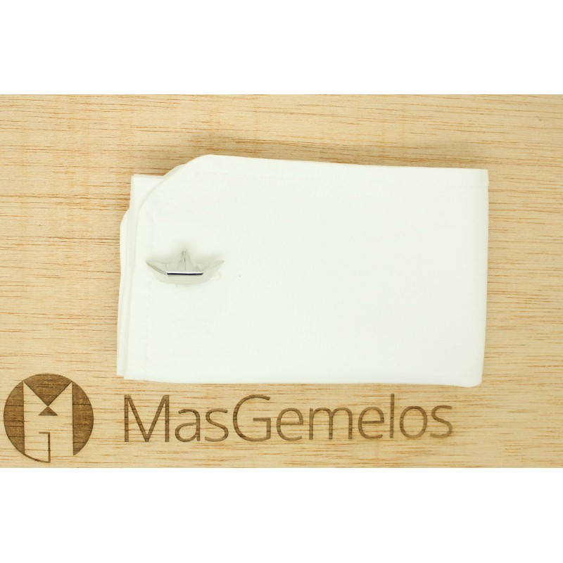 Gêmeos de camisa Barco de papel feitas de aço e banhadas em rodio que representa a forma de um navio de papel em três dimensões.
