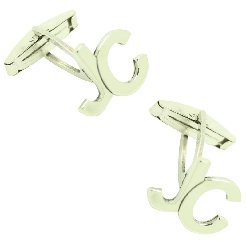 Abotoaduras de camisa personalizadas Iniciais roladas JC 925 Prata