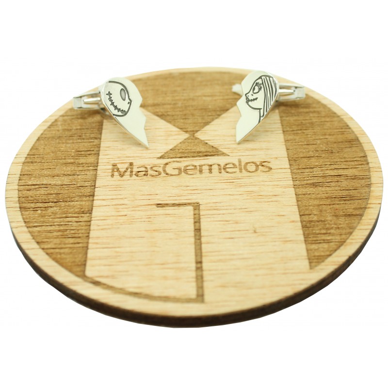 Abotoaduras personalizados Pesadelo antes do Natal Coração Prata 925