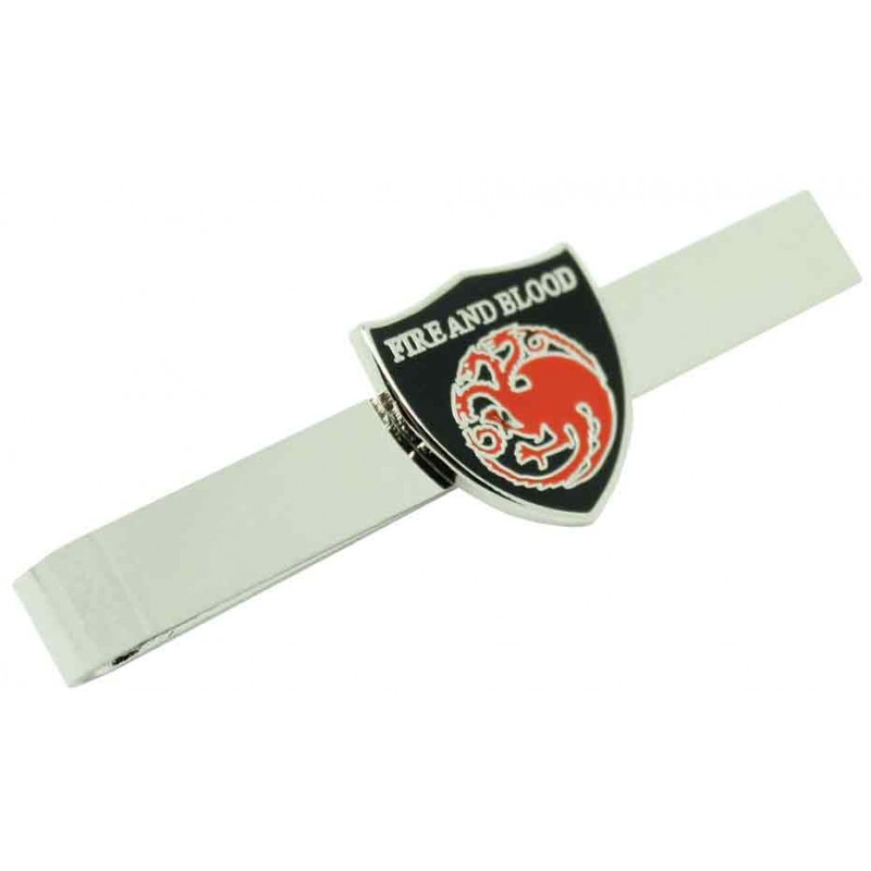 O alfinete da gravata da Casa Targaryen representa uma família nobre fictícia pertencente à saga da literatura fantástica Canção de gelo e fogo. Os Targaryens escaparam da destruição da Valyria para se instalarem em Pedra do Dragão, de onde Aegon I conquistou o Ocidente. A partir deste evento governaram como reis por quase 300 anos. Estavam instalados na capital do reino Desembarque do Rei e na ilha-castelo de Rocadragon. Seu escudo é um dragão de três cabeças de gaivotas lançando chamas em campo de sabre, e seu lema é "Fogo e sangue".