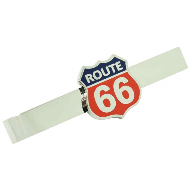 Este pin de gravata representa o sinal da Rota 66, U.S. 66, também conhecida como Route 66, fazia parte da Rede de Estradas Federais dos Estados Unidos. Originalmente ia de Chicago, através de Missouri, Kansas, Oklahoma, Texas, Novo México, Arizona e Califórnia, até terminar em Los Angeles, com um percurso de 2448 milhas (3939 km).
