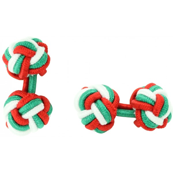 Abotoaduras de bola elástica vermelhas, verdes e brancas