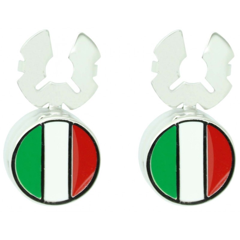Botões para camisa Bandeira da Itália fabricadas em aço e revestidas em rodio, esmaltadas nas cores vermelho e amarelo que representam a bandeira da Espanha de forma circular.