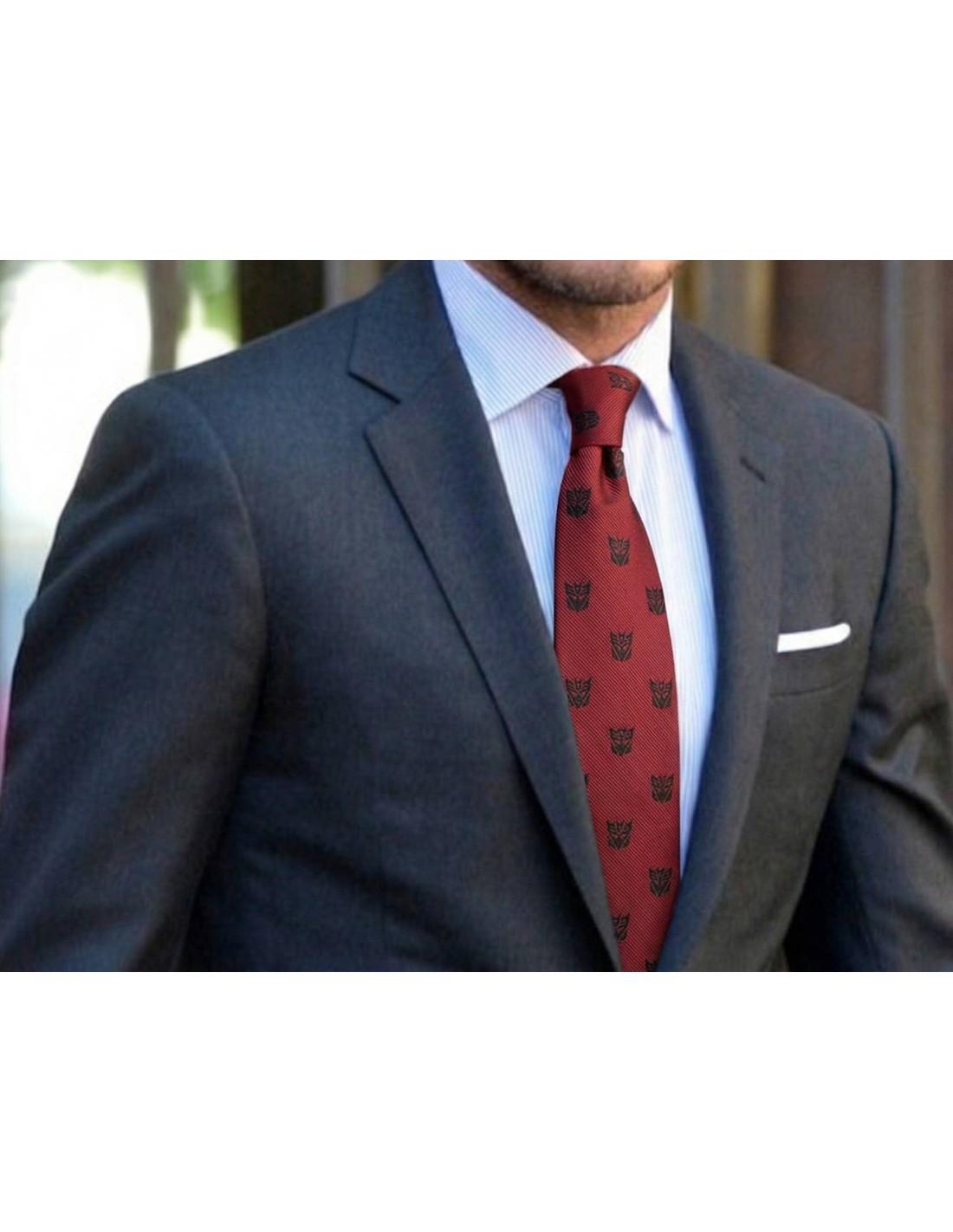 Corrida de Transformers e Decepticons, feita em Seda natural de cor vermelha com motivos dos robôs Transformers e Decepticons e com o tamanho de uma pá de 7 cm.