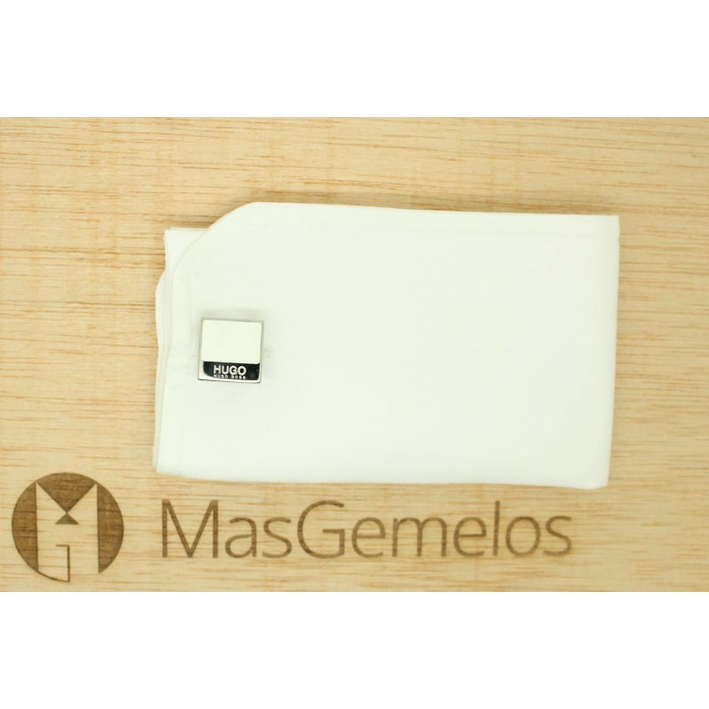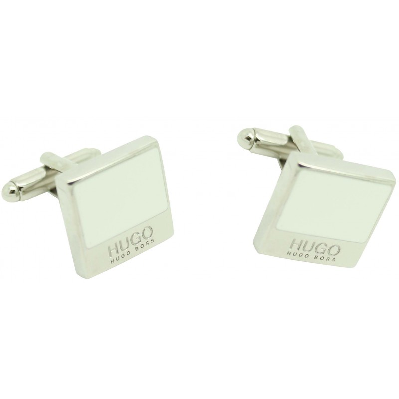 Este desenho é apresentado quadrado branco elegante HUGO , peça polida à mão com logotipo gravado em fechamento fixo que fornece uma distinção sutil sendo uma das marcas de luxo mais famosas para homens em trajes e acessórios.