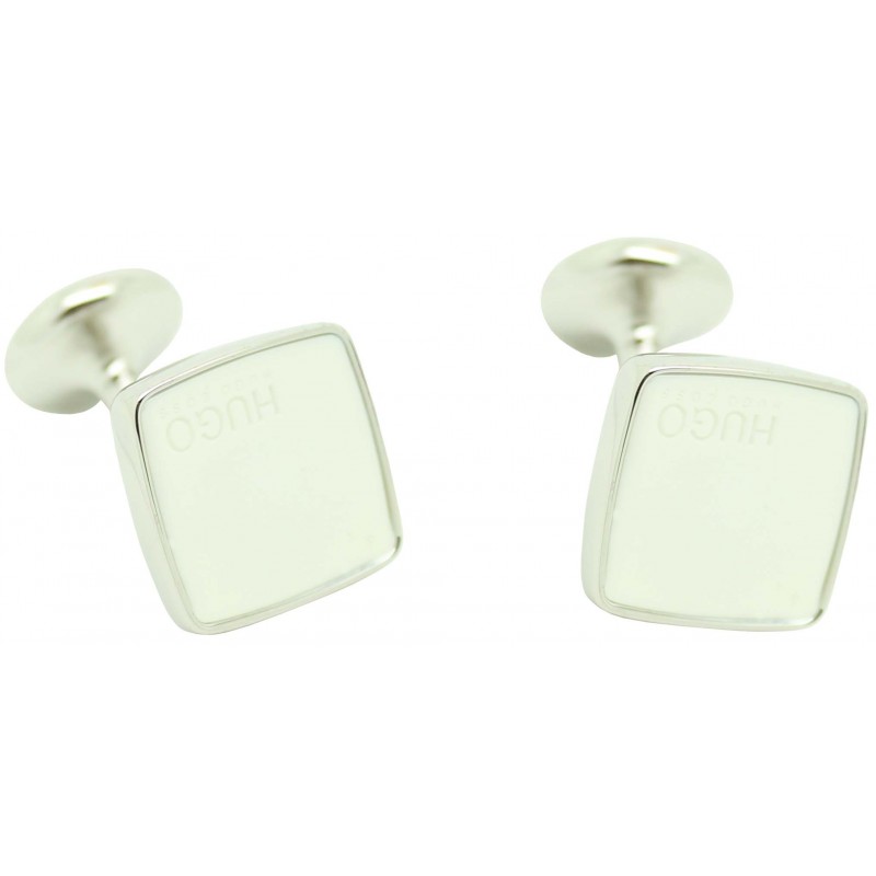 É apresentado este desenho redondo branco elegante HUGO , peça polida à mão com logotipo gravado em fechamento fixo que fornece uma distinção sutil sendo uma das marcas de luxo mais famosas para homens em trajes e acessórios.