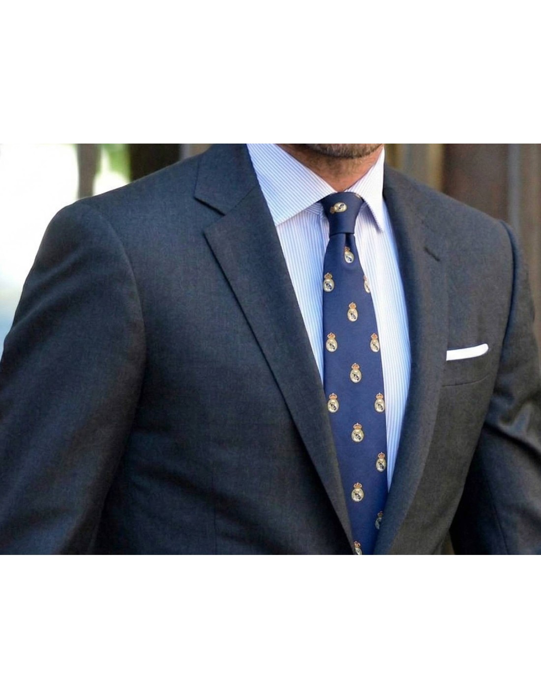 Gravata com brasão do Real Madrid em azul-marinho