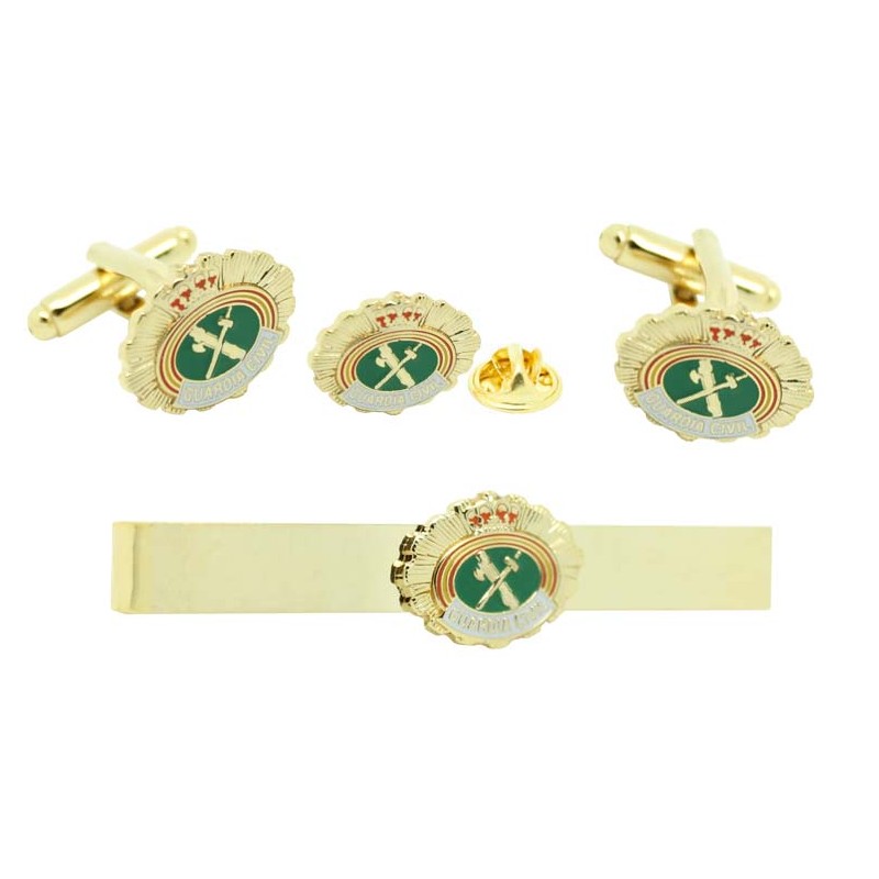 Pacote de abotoaduras de camisa com distintivo da Guarda Civil, prendedor de gravata e alfinete de lapela