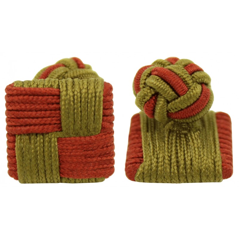 Gêmeos elásticos de Seda com forma quadrada em granada e verde de azeitona.