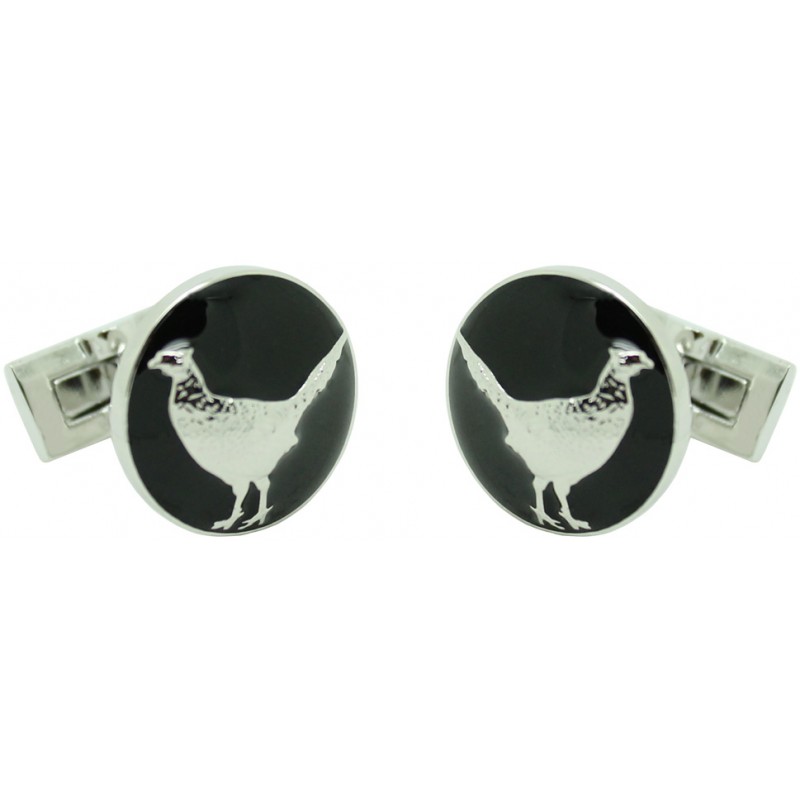 Gêmeos para camisa de faisão de caça by Skultuna com fundo Negro e prateada, uma das marcas mais reconhecidas de jóias provenientes da Suécia e além das mais antigas do mundo fundada em 1607 e que é levada pela Casa Real da Suécia.